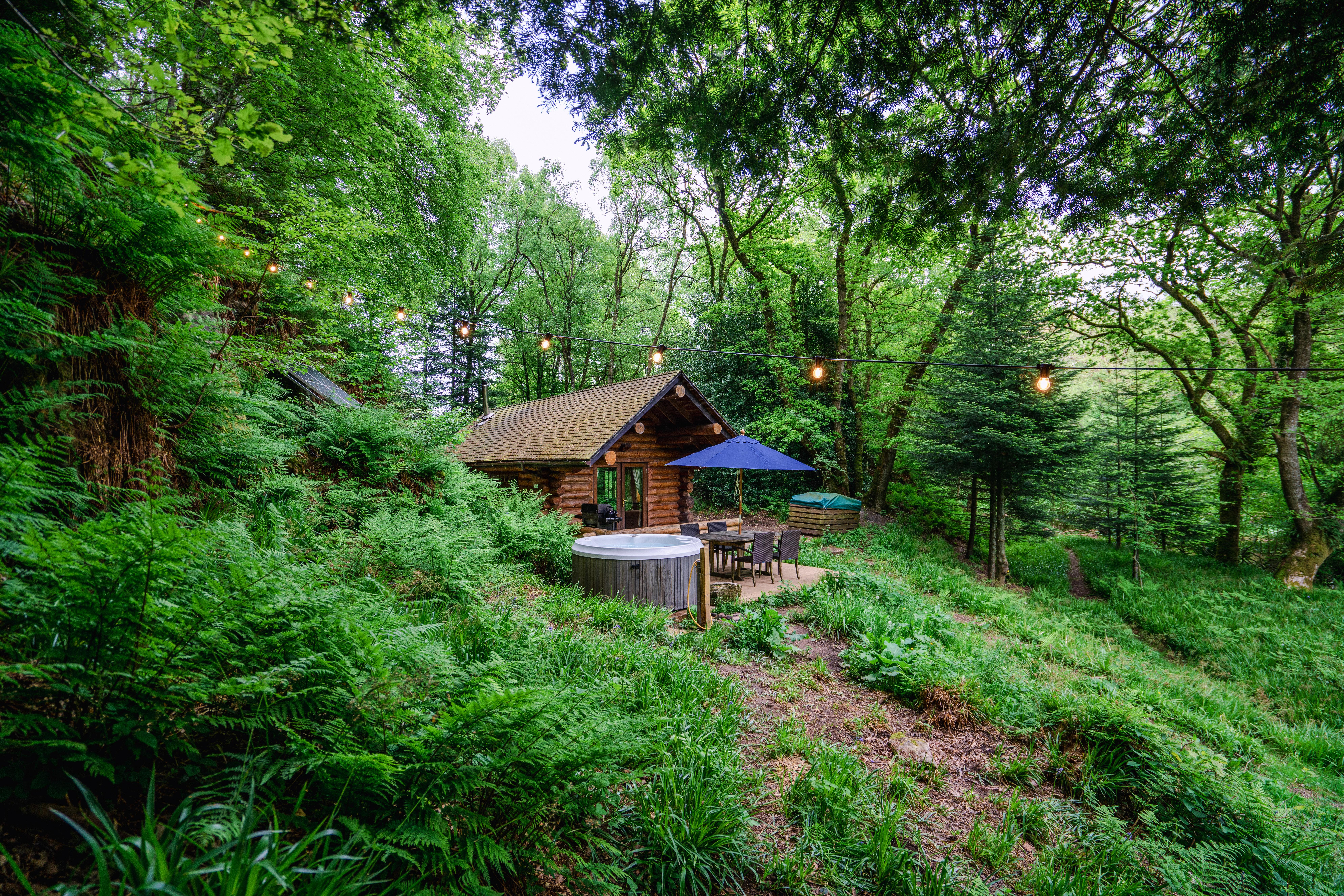 Envision a luxury cabin lifestyle at Cabin Tapio, a sanctuary blending mid-century furniture, elegant Farrow & Ball wood paneling, and a tasteful ambience. This single-level beauty envelops you with its enchanting veranda and garden. It's situated close to the tranquil River Allen — an extension of the Avon — where occasionally, you might spot a blue trout breaking the water's tranquility with a leap. The cabin, designed with open French doors for summertime, effortlessly transitions into a winter haven offering the cosy charm of hygge, completed with a wood burner and a private hot tub adjacent to a pizza oven in the exterior decking area.